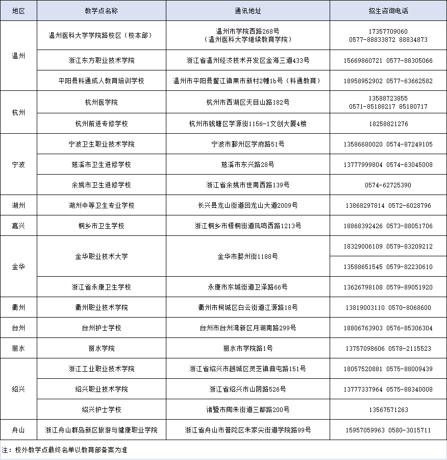 浙江舟山群岛新区旅游与健康职业学院系温州医科大学在舟山的唯一校外教学点,已培养毕业生54人。