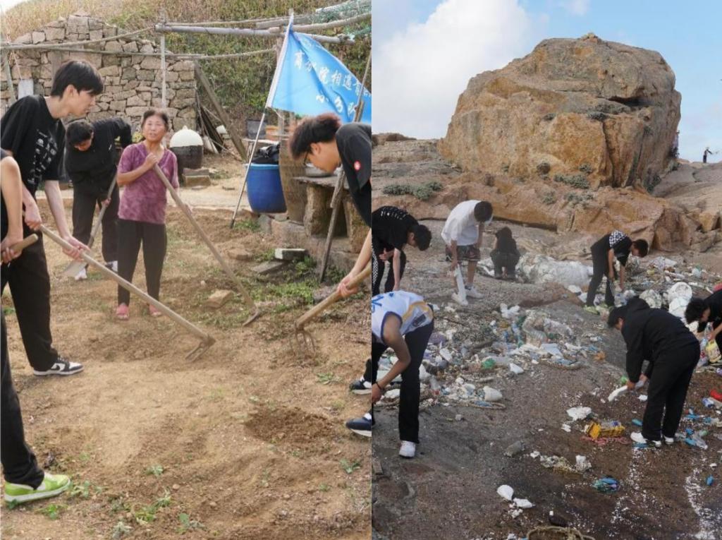此外,在实践过程中,队员们发挥自己的特长,为当地渔民进行视频宣传。队员们还进行敬老助残,帮助渔民干一些力所能及的事情,同时队员们积极参与环保活动,帮助清理海滩垃圾,宣传海洋环境保护的重要性。