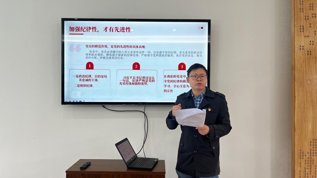 结合党纪学习教育,支部书记郑永骥为支部党员上了一堂以《加强纪律性,革命无不胜》的党课,秀南村党员共同参加。郑永骥从“纪律严明是党的优良传统”“党员干部要养成遵规守纪的高度自觉”两个方面入手,结合党史,让党员们对《中国共产党纪律处分条例》有了进一步的认识。